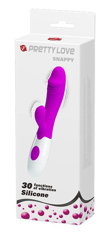 Rabbit Snappy de Pretty Love- silicona Textura suave. Cuenta con un diseño elegante y con una estimulación dual, tanto vaginal como para el clítoris. Su superficie es suave gracias a su silicona de alta calidad, impermeable para usar en la ducha.