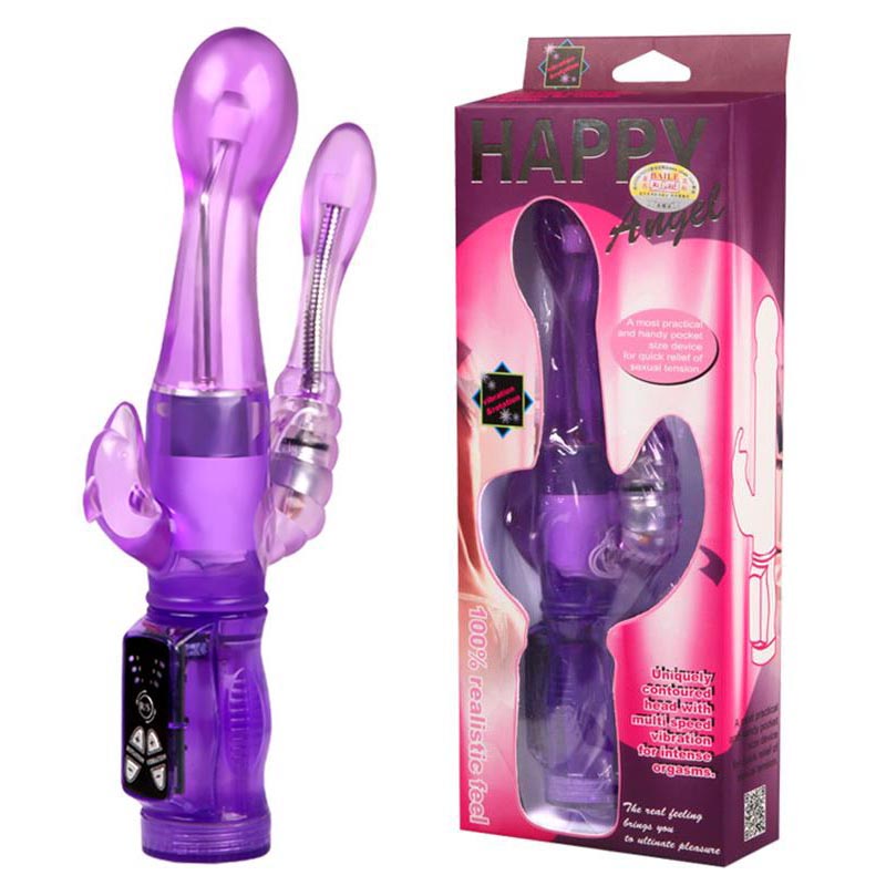 Un conejo vibrador con estimulador anal. Este vibrador es muy suave, tiene un estimulador anal con un vibrador bala en la base