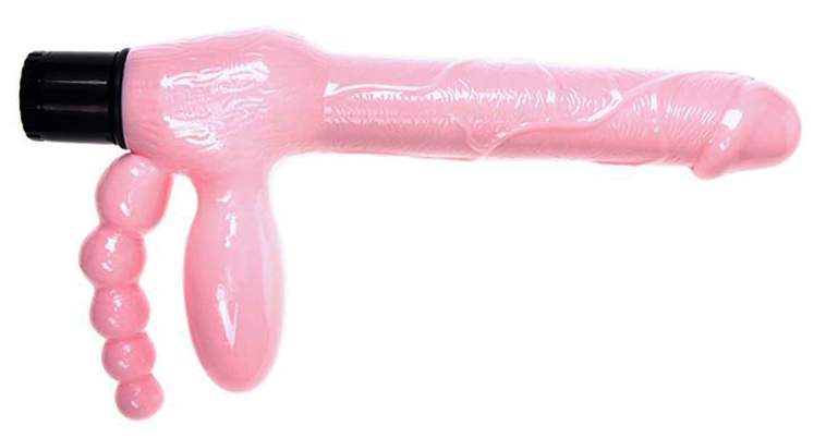 SUPER STRAPLESS DILDO . Triple penetracion. Medidas: 25,4 x 3,2 cm . Usa 2 pilas AA. Intensidad vibracion regulable |