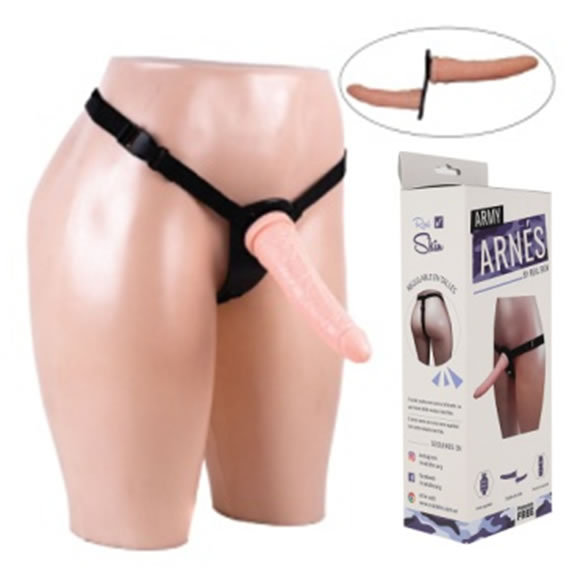 90-092-21 Arnes doble bananin piel. Eleva el placer hacia otro nivel con este arnés regulable a cada cintura. Este arnés tiene el diferencial de tener doble penetración. Además de tener un dildo delantero cuenta también con un dildo interno, para que disfrute sea doble. Medida externa: 19 cm x 3,5. |